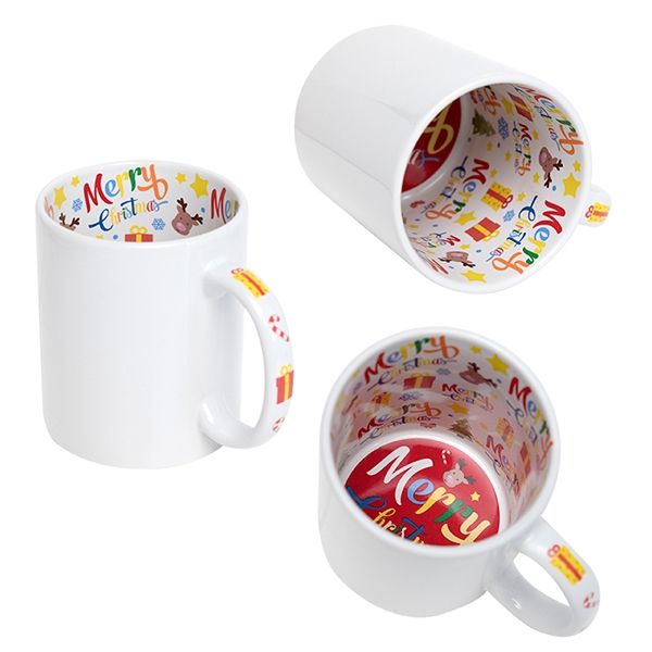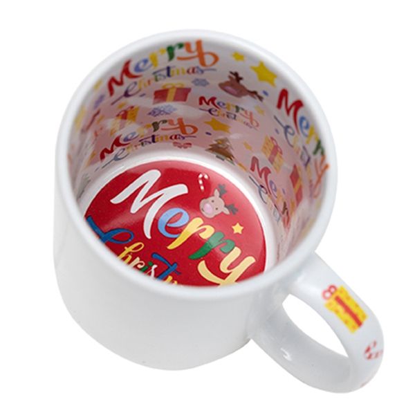 Чаша с цветна вътрешност и дръжка MERRY CHRISTMAS, която се изработва с Ваша снимка, надпис, картинка, лого!